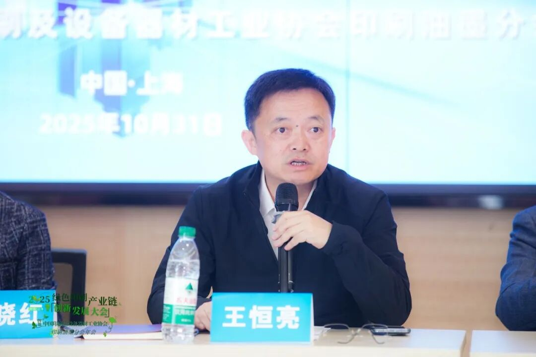 會議伊始,中國印工協(xié)印刷油墨分會輪值理事長、上海英威噴墨科技有限公司總經(jīng)理王恒亮對印刷油墨分會2025年的工作進行了全面細(xì)致的匯報。過去一年,印刷油墨行業(yè)在促進高質(zhì)量發(fā)展、推動企業(yè)綠色化與智能化轉(zhuǎn)型升級方面取得了顯著成效。印刷油墨分會充分發(fā)揮橋梁紐帶作用,積極推進總會決議的落實,完成總會交辦的各項工作任務(wù);在北京國際印刷技術(shù)展覽會上協(xié)助做好前期參展和現(xiàn)場服務(wù)工作,并成功召開了油墨團體標(biāo)準(zhǔn)宣貫推介交流會,為行業(yè)可持續(xù)健康發(fā)展貢獻力量;分會持續(xù)進行油墨行業(yè)新技術(shù)、新產(chǎn)品的宣傳和推廣工作,微信公眾號粉絲數(shù)量持續(xù)攀升;積極籌備2025綠色印刷產(chǎn)業(yè)鏈創(chuàng)新發(fā)展大會,感謝全體參與單位的大力支持。