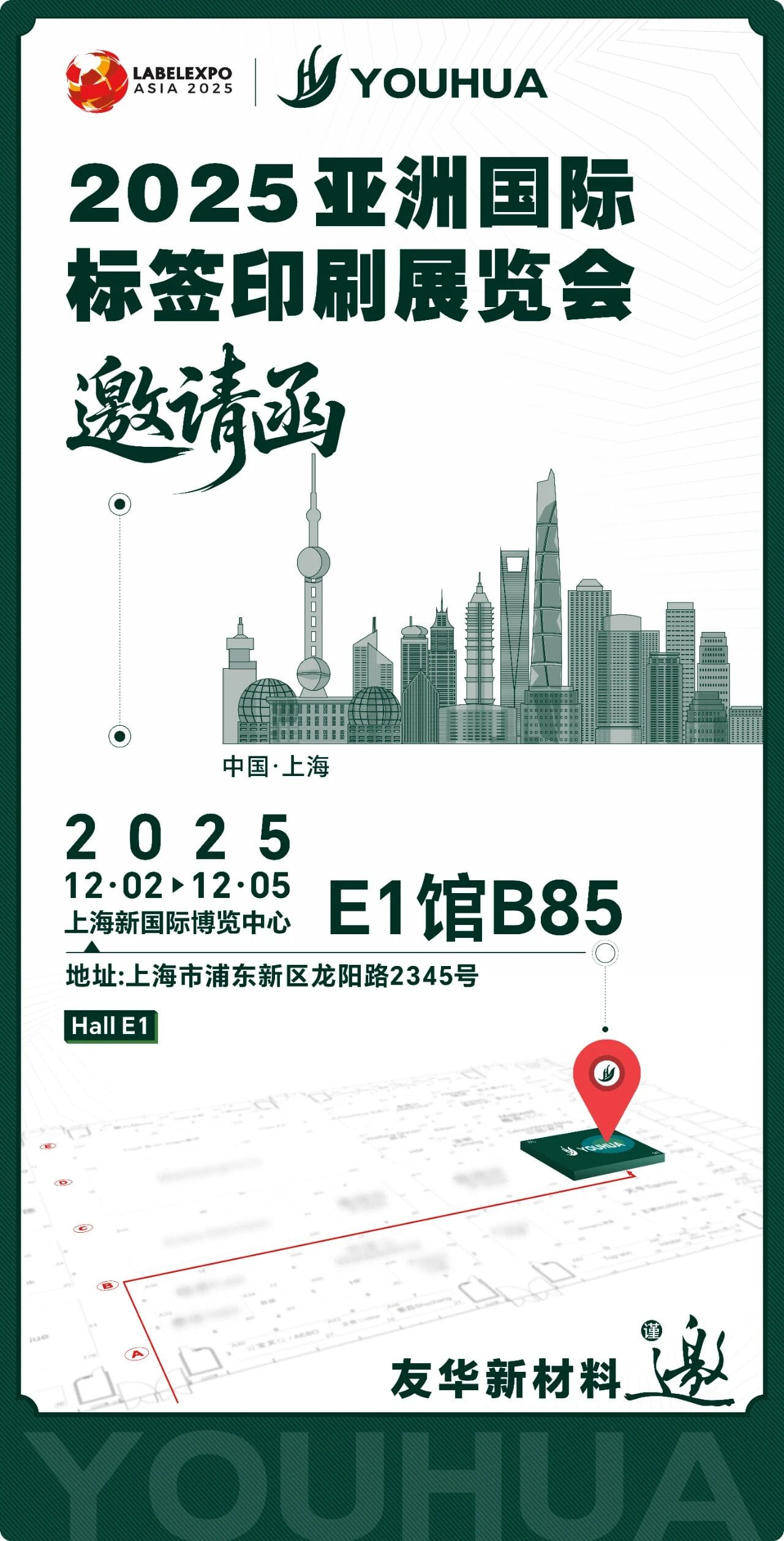 廣東友華新材料科技有限公司12月2日到5日將重磅亮相 2025亞洲國際標簽印刷展覽會-E1館B85