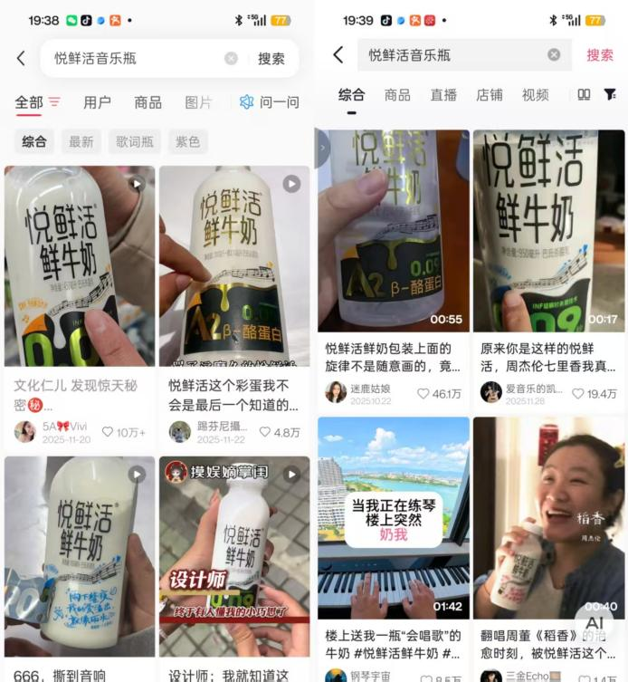 2025年下半年,國內高端鮮奶品牌“悅鮮活”官宣周杰倫成為其品牌代言人,并同步上線了限定版“周杰倫歌詞瓶”。這款包裝將《晴天》《七里香》《稻香》等經典歌詞,以隱藏彩蛋的形式印在了瓶身標簽的內側,需要消費者親手“撕開”才能發現。這個含蓄的巧思一經網友發掘,迅速在社交媒體發酵。為了集齊這些隱藏的“彩蛋”,許多消費者跑遍了不同門店,并在社交媒體上興奮地分享自己的“戰果”。這款包裝,讓喝牛奶變成了一場充滿情懷與驚喜的互動游戲。