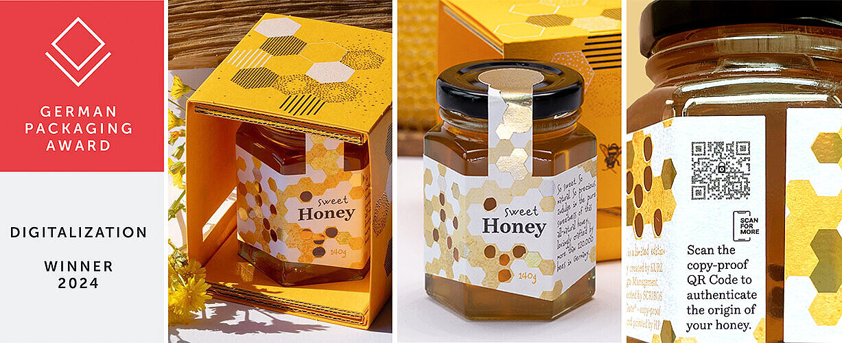 在2024年和2025年接連斬獲德國包裝獎和世界包裝大獎(World Star Awards)的由庫爾茲LEONHARD KURZ及其子公司科衛寶SCRIBOS聯合打造的蜂蜜包裝“甜蜜蜜”更是智能包裝的典型案例。