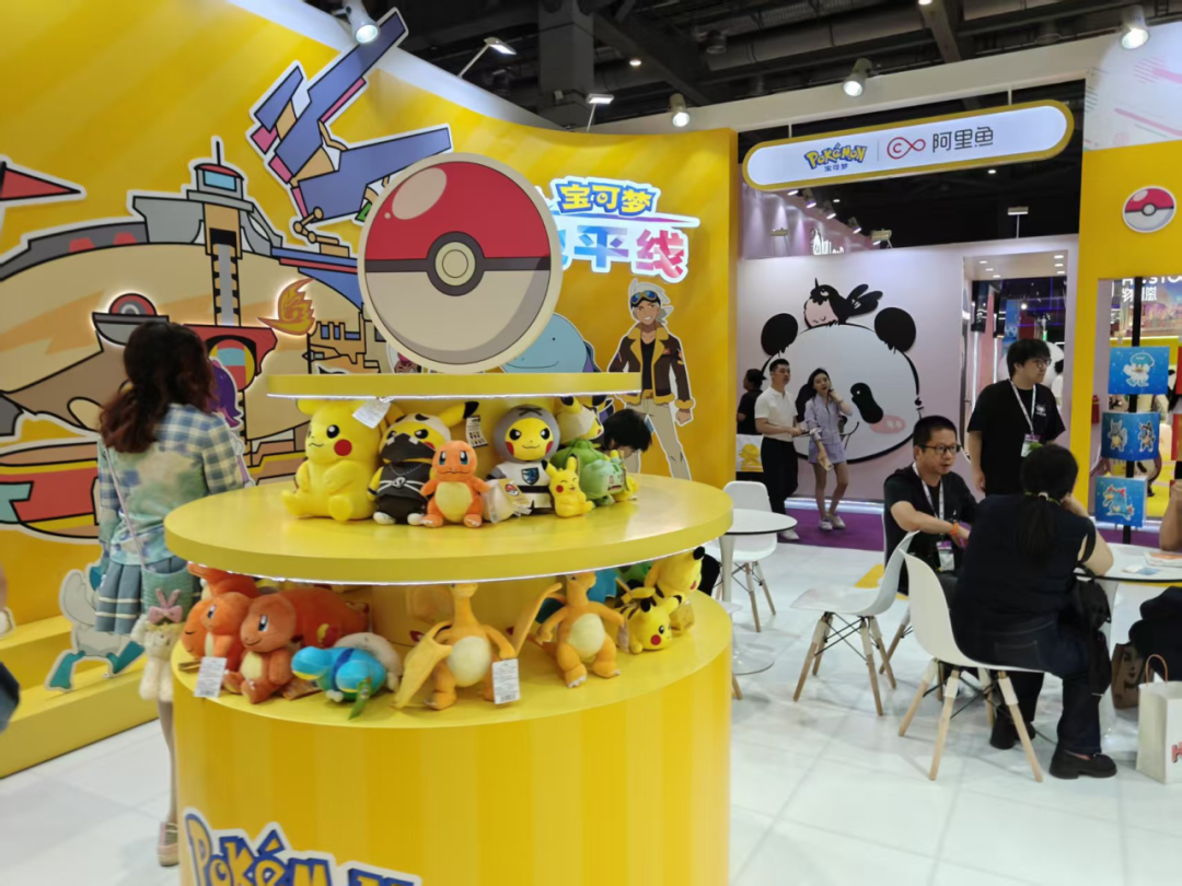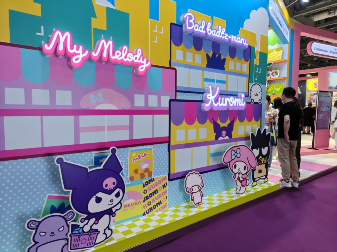 ▲國際授權(quán)展(上海站)上的阿里魚展臺(tái),除了三麗鷗還有寶可夢、chikawa、蠟筆小新等國際知名IP