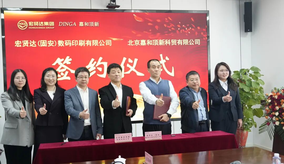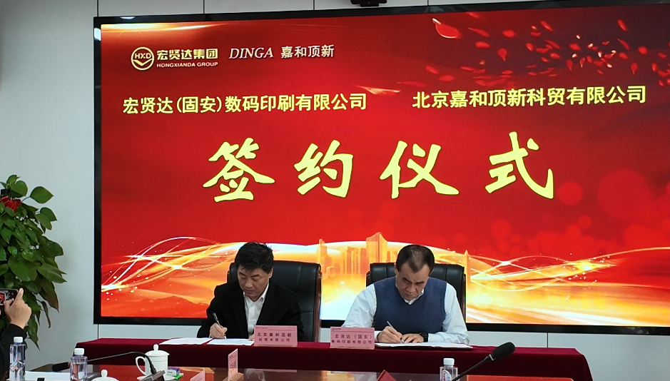 在各位領(lǐng)導、嘉賓與全體同仁的共同見證下,宏賢達(固安)數(shù)碼印刷與嘉和頂新戰(zhàn)略合作簽約儀式圓滿完成。