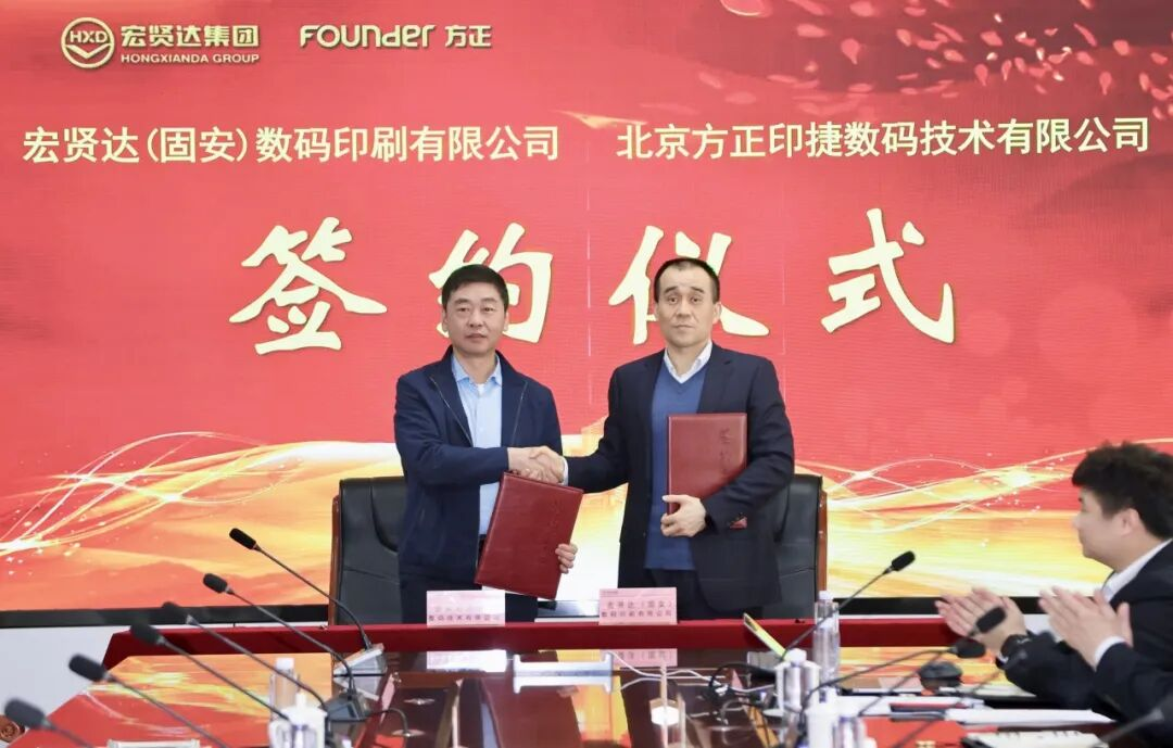 4月10日,方正印捷與北京宏賢達(dá)物流集團(tuán)有限公司旗下宏賢達(dá)(固安)數(shù)碼印刷有限公司在河北固安舉辦印刷設(shè)備采購簽約儀式。雙方正式簽署協(xié)議,宏賢達(dá)集團(tuán)引進(jìn)2臺方正桀鷹P8800HD高清黑白噴墨輪轉(zhuǎn)印刷機(jī),共同推動圖書按需印刷(POD)與出版供應(yīng)鏈深度協(xié)同發(fā)展。