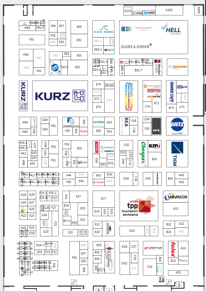 在約140000平方米的凈面積18個展廳里,所有參展商都將展示各自印刷技術(shù)領(lǐng)域的發(fā)展趨勢和創(chuàng)新想法。其中,包裝生產(chǎn)和印刷包裝是兩個同樣重要的領(lǐng)域。眾多全球知名展商悉數(shù)在列,例如:Bobst,Canon,Comexi,Duplo,EFI,Epson,ESKO,F(xiàn)ujifilm,Heidelberg,Horizon,HP,Kodak,Koenig&Bauer,Kolbus,Komori,Konica Minolta,KURZ,Landa,Müller Martini,Ricoh,Screen,Windm?ller&H?lscher,Xeikon。觀眾可以在www.drupa.de上在線查看參展商的完整名單。