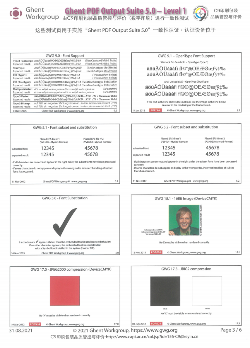 針對設備的色彩能力,還同時開展了“CMYK/RGB顏色連續性一致性評價”以及“50%中間調和100%實地顏色周期和長周期色彩穩定性評價”。
