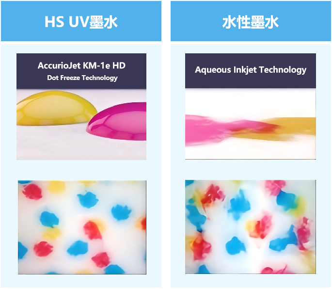 AccurioJet KM-1e HD采用了獨特的HS-UV墨水與固化系統,憑借其墨滴瞬凝技術,使得墨滴邊緣銳利,成像質量更高,層次感更豐富,可在多種材質上均可實現高質量印刷。