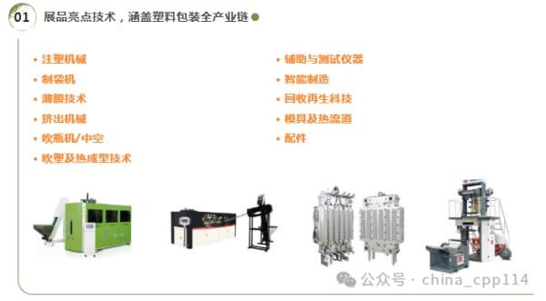“塑料包裝容器生產設備專區”將匯聚先進的注塑機、吹瓶機、中空吹塑機、成型機、制袋機、吹膜機、擠出機等設備,覆蓋從小型容器到大型包裝的各個領域。這一專區將提供全方位的解決方案,滿足不同客戶的生產需求和技術要求,從而幫助客戶實現生產效率的提升和成本的降低。